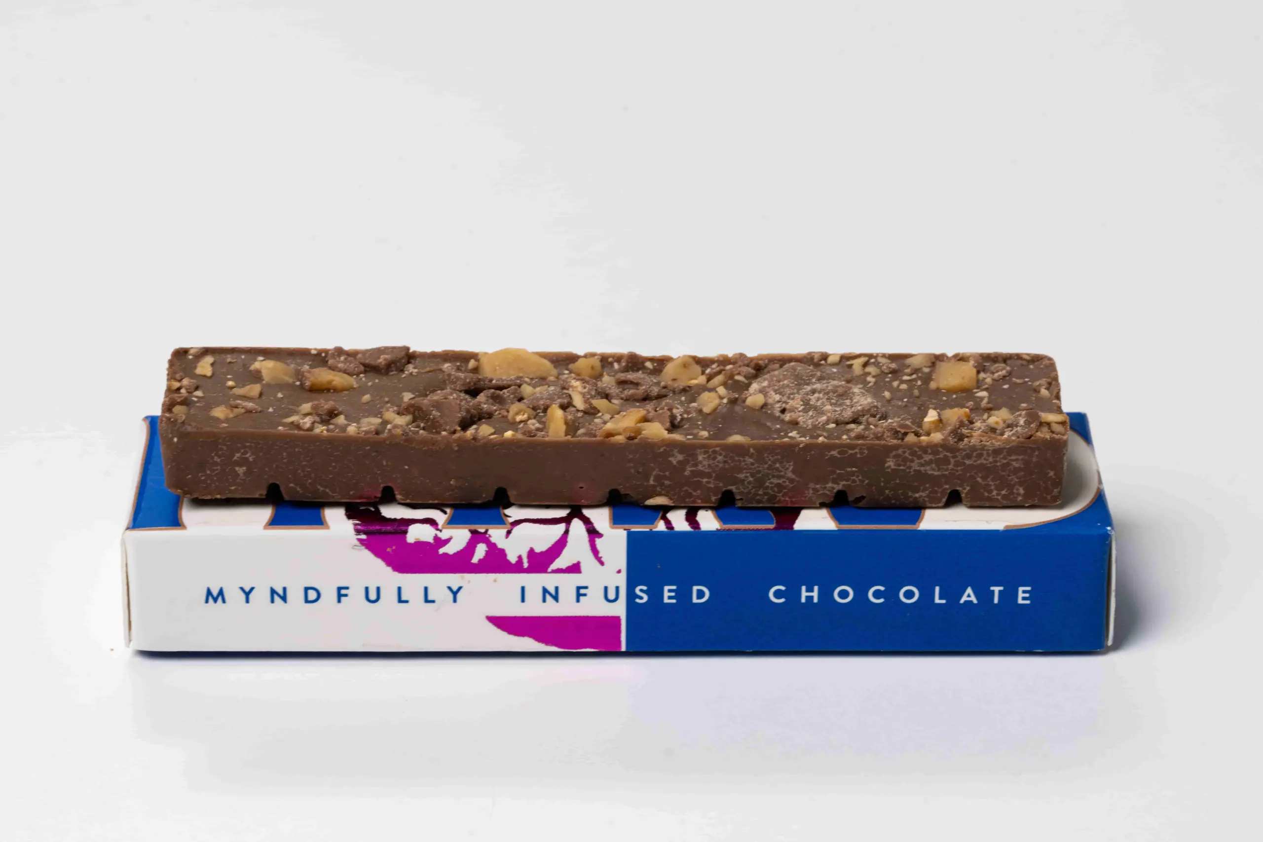 Myndfully infused chocolate bar Milk Chocolate – Toffee flavor Each bar contains 4g, 8 pieces of chocolate per bar with 500mg each.